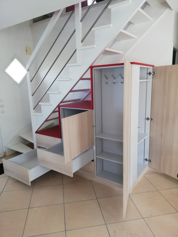 Composé de tiroirs et penderie en mélaminé avec le choix d'une grande palette de coloris bois ou unis